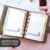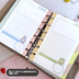 【商品概要】=========== POPO CHAN'Sシリーズ「うさポポ(うさぎ)柄」のミニ6デイリーリフィルです。 タスクを書くスペースのほかに、その日の良かったことや明日のメモなどを自由に書ける欄、 ごほうびのシールを貼ったり、スタンプを押せる小さなスペースをデザインしました。 万年筆やインクボールペンでもにじみにくい紙を使っていて、 少し厚めなので裏抜けもしにくく、毎日気持ちよく書き込めます。 作者自身がシールを貼るのが好きで、 「この楽しさを毎日のごほうびとして手帳でも味わえたらいいな」 と思ったことから生まれたリフィルです。 シールデコする時間がない!今日はちょっと疲れちゃった…という日でも 1枚ぺたっとごほうびに貼ることで、小さな達成感を可愛く記録できるデザインになっています。 【仕様】============= ・種類:ミニ6手帳リフィル(6穴/システム手帳用) ・サイズ:80mm × 126mm(M6) ・内容量:15枚入り(約1ヵ月ぶん) ・紙質:モンテルキア(81.5kg) ・印刷:両面印刷(印刷会社様にて制作) 【穴あけ加工について】====== 穴あけをご希望の方は「穴あけ加工あり」の商品をお選びください。 穴のサイズは5.5mmです。 ※手作業での穴あけのため、わずかなズレが生じる場合がございます。