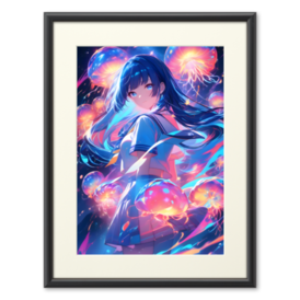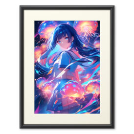 複製画(プリモアート) - A3夜空に浮かぶ月と星々の下、光を帯びた幻想的なクラゲたちに囲まれる少女を描いた、ファンタジー×アニメ調のデジタルイラストです。 柔らかく揺れる長い髪と、透明感のあるセーラー服。 クラゲはまるで小さな星雲のように輝き、青・ピンク・オレンジの光が画面全体を包み込みます。 静けさと神秘、そしてどこか切なさを感じさせる世界観を大切に仕上げました。 商品詳細: ファイル形式:PNG 解像度:3584 x 4608 ピクセル スタイル:夜空、月、星
