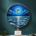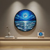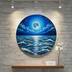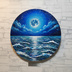 【油絵】心を落ち着かせる海景画 丸形「青い満月と輝く海」油彩画インテリア