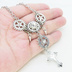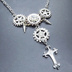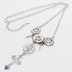 アンティークシルバー ロザリオと歯車を組合せたスチームパンク多層多重ネックレス ラインストーン 長さ調整可