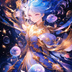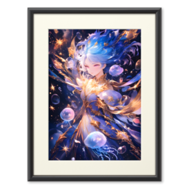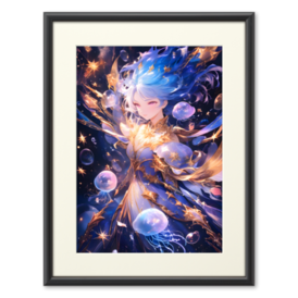 複製画(プリモアート) - A3星々の海を漂う、幻想的な星界の乙女を描いた高精細イラスト作品です。 深い夜空を思わせる群青と、きらめく金色の装飾が織りなすコントラストが、神秘的で幻想的な世界観を演出します。 流れるような青い髪は星雲のように広がり、周囲には光を宿した泡や星屑が浮遊。 まるで宇宙そのものが意思を持ったかのような、静かで力強い存在感を感じさせます。 商品詳細: ファイル形式:PNG 解像度:3072 x 5376 ピクセル スタイル:ファンタジー , 宇宙 , 神秘