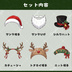 ・サンタ-帽子 ・サンタ-ひげ ・トナカイ-カチューシャ ・トナカイ-帽子 ・ニット帽子 ・シルクハット
