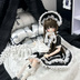 「黒×白」セット「Black×White」SET: ・ショートスリーブスクエアネックワンピース(背面ファスナー仕様)(黒×白)*1 ・ニーソックス(白×黒)*1 ・ボンネットキャップ(黒×白)*1 ・パフスリーブパーツ(白×白)*1 「白×白」セット「White×White」SET: ・ショートスリーブスクエアネックワンピース(背面ファスナー仕様)(白×白)*1 ・ニーソックス(白×白)*1 ・ボンネットキャップ(白×白)*1 ・パフスリーブパーツ(白×白)*1 ・Short-sleeve square-neck dress (with back zipper) *1 ・Knee socks *1 ・Bonnet cap *1 ・White×White sleeve part *1