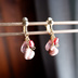 繊細な素材・造りになっていますので、強い衝撃や引っ掛け等、破損の原因となるものにご注意ください。 雫型の石(ストロベリークォーツ)は、ワイヤーとの接触部に負荷が掛かると割れやすいため、特に衝撃にはご注意ください。 汗・埃などの汚れが付着しますので、使用後は柔らかい布(メガネ用のクロスなど目の細かいもの)で軽く拭いてください。 (※お手入れの際にもワイヤーと石が接している部分に強い力を掛けないようにお気をつけください。)
