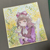 ☆ ミニ色紙(13.6×12.1)cm 透明水彩・水彩色鉛筆・アクリル絵の具・色鉛筆・写真の見え方による色の誤差、塗りムラ、はみ出し、下書き跡などがあること、写真をご確認の上ご理解ください。サインは裏面に書いてあります。