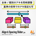 【illustrator】「全体」と「個別」のアキを同時に調整。基準値の倍率での間隔指定もできる間隔調整スクリプト『Align & Spacing Slider』