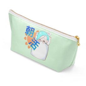 【葵叶社長】朝活 ポーチ - 長さ21.5cm / 高さ10cm - ホワイト
