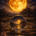 夜空に大きく輝く黄金の月。 その光を映し出すように、静かな水辺に置かれた透明なガラス球。 球体の中には、もうひとつの月と世界が閉じ込められ、現実と幻想が静かに重なり合います。 水面に揺れる月光、柔らかく咲く花々、深い夜の静寂。 この作品は「内なる宇宙」「世界の反映」「静かな覚醒」をテーマに描かれた幻想的なアートです。 眺めていると、時間がゆっくりとほどけ、 心が自然と静まり、自分自身の中心へと意識が戻っていく感覚をもたらします。 インテリアとして飾るのはもちろん、 瞑想空間や寝室、ワークスペースにもおすすめです。 商品仕様 サイズ:A4(2480 × 3508 px) 解像度:300dpi 形式:PNG 用途:印刷・個人鑑賞用 ※デジタルデータ商品のため、物理的な発送はありません。