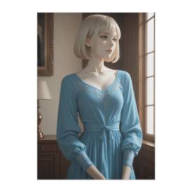 ポスター - B2この商品はpixivFACTORYで作られた商品です。サンプル画像は完成イメージのため、実物と異なる場合があります。 窓辺の自然光に照らされた、青いドレスの横顔ポートレートです。 静かな視線と柔らかな光が、透明感のある雰囲気を生み出しています。 落ち着きと気品を感じさせる、鑑賞向けの一枚です。