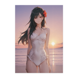 ポスター - B2この商品はpixivFACTORYで作られた商品です。サンプル画像は完成イメージのため、実物と異なる場合があります。 穏やかな夕暮れの海を背景に、 白のワンピース水着をまとった女性を描いたアニメイラスト風ポスターです。 柔らかな光と静かな波の雰囲気が、 清楚さと大人の落ち着きを同時に感じさせます。 お部屋を優しく彩る一枚としておすすめです。