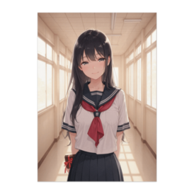 ポスター - B2この商品はpixivFACTORYで作られた商品です。サンプル画像は完成イメージのため、実物と異なる場合があります。 夕方の校舎に差し込むやわらかな光の中で、 静かにこちらを見つめる少女の一瞬を切り取ったポスターです。 穏やかな表情と落ち着いた空気感が、 見る人の気持ちをそっと和らげてくれます。 お部屋に自然になじむ、やさしい雰囲気の一枚です。