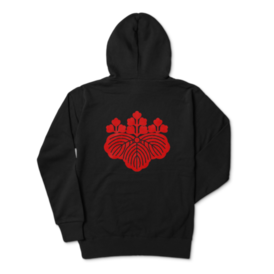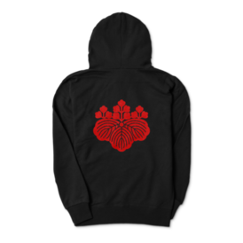 織田信長 豊臣秀吉 家紋 五三の桐 パーカー 黒に赤