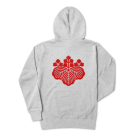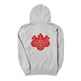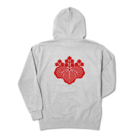織田信長 豊臣秀吉 家紋 五三の桐 パーカー グレーに赤