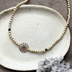 閃光のハサウェイのキャラクター、ギギ・アンダルシアがつけている首飾りをイメージしたネックレスです。 マットゴールドのラウンドビーズが連なったネックレスです。中央にゴールドの透かしチャームが配置されています。 透かしチャームの直径が約2.5cm、 ネックレス全長がデフォルトで40cm、金具色はゴールドです。 イメージピアスもございます。 何点ご購入頂いても送料は1点分のみとなっており、まとめ買いもお得です。 小型ダンボールに梱包材と共にラッピングし、定形外郵便で発送させて頂きます。 一つ一つ手作りしたハンドメイド作品です。無理な力を加えたりしないで下さい。 この作品はお客様のご要望により製作されました。