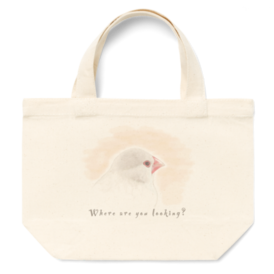トートバッグ - S - プリント面積小どこを見ているの?と聞きたくなるような、どこか儚げなアンニュイな表情をした文鳥さん。 お外を見ながら日向ぼっこをしているところを描きました。 どこか人間のようにも見えてきます♡ サイズは、30㎝×20㎝×マチ10㎝、容量が4ℓなので、ちょっとしたお出かけやお弁当などを入れるのにピッタリです。綿100%で固めのしっかりとした生地です。 商品はpixivFACTORYで作られた商品です。サンプル画像は完成イメージのため、実物と異なる場合があります。