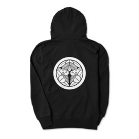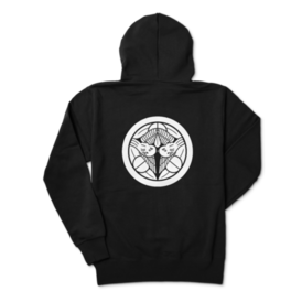上杉謙信 家紋 竹に飛び雀 パーカー 黒に白