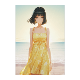 ポスター - B2この商品はpixivFACTORYで作られた商品です。サンプル画像は完成イメージのため、実物と異なる場合があります。 夕日の海辺を背景にしたサマードレスポートレート作品です。 明るいイエローカラーと柔らかな光が、温かく落ち着いた印象を演出します。 ポスターやインテリアアートとしておすすめです。
