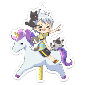 アクリルキーホルダー - 70 x 70 (mm)このアクキーはエンドロールで使用しているイラストのアクリルキーホルダーです。 2026年の誕生日記念としてアクリルキーホルダーにしてみました。 家族の猫のキキとララとラッキーとメリーゴーランドのペガサスに乗っているイラストをぽと麸さんに描いて貰いました。 イラスト ぽと麸 さん https://lit.link/potofu_ZIX96 この商品はpixivFACTORYで作られた商品です。サンプル画像は完成イメージのため、実物と異なる場合があります。