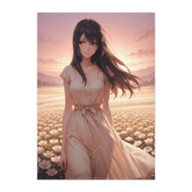 ポスター - B2この商品はpixivFACTORYで作られた商品です。サンプル画像は完成イメージのため、実物と異なる場合があります。 夕暮れの花畑に立つ女性を描いたやさしい色調のポスターです。 暖かな光と自然の広がりが穏やかな空気感を生み、 落ち着いた空間演出に適したアート作品です。