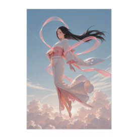 ポスター - B2この商品はpixivFACTORYで作られた商品です。サンプル画像は完成イメージのため、実物と異なる場合があります。 雲の上を舞う天女を描いた幻想的なアート風ポスター作品です。 流れる衣装とリボン、空の広がりが印象的なダイナミックな構図。 ファンタジー好きの方や空モチーフのインテリアにおすすめです。