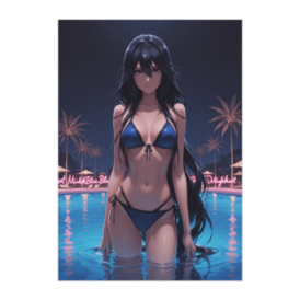 ポスター - B2この商品はpixivFACTORYで作られた商品です。サンプル画像は完成イメージのため、実物と異なる場合があります。 ネオンが反射するナイトプールを背景にした、透明感のあるロングヘア女性のアートポスターです。水面の光や夜景の雰囲気が印象的で、落ち着いた大人の空間を演出します。インテリアや観賞用ポスターとしておすすめです。