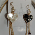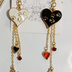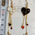 ハンドメイドピアス 赤 白 黒 ハート 猫足跡 ゴールド スワロフスキー