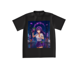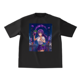 ビッグシルエットTシャツ - XL - 正面夜ネオン輝く街にぶどうちゃんが大暴れ この商品はpixivFACTORYで作られた商品です。サンプル画像は完成イメージのため、実物と異なる場合があります。