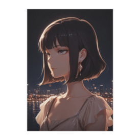 ポスター - B2この商品はpixivFACTORYで作られた商品です。サンプル画像は完成イメージのため、実物と異なる場合があります。 洗練された雰囲気のショートヘア女性ポートレート作品です。 夜景の輝きと透明感のある表情が印象的で、落ち着いたアートとして楽しめます。