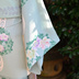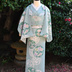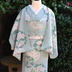 ご好評だった「薔薇で紡ぐ物語」の丸紋シリーズ第2作目です。 即納で2反だけご用意しました! 水面に見立てた翡翠色の生地に、夏の草花が涼しげに浮かぶ涼趣の図案です。 丸く見立てた萩の上に、桔梗、百合、撫子、雛菊、菖蒲、藤といった初夏から晩夏までの花を色とりどりに咲かせました。 特定の花の時期にとらわれず、長い時期お召しになれます。 草花の間を飾るのは、波をかたどった大きな流水の丸紋。 今回はさらっとして速乾性のあるセオアルファでお作りしました。 視覚的、体感的に涼しげな着物で、夏のお出かけはいかが? 素材:セオアルファ(洗える化繊着物) サイズ:38cm x 1300cm