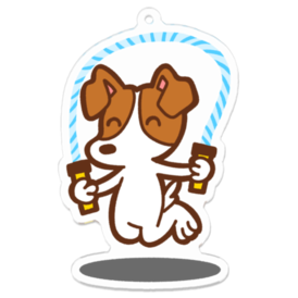 縄跳びする犬のアクリルキーホルダー