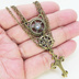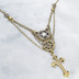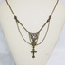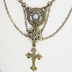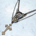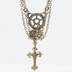 アンティークゴールド 猫とロザリオのスマートなスチームパンク風ダブルチェーン ネックレス アジャスター付 長さ調整可