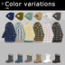 📢 ˗ˏˋ コニカ二コ1周年記念 ˎˊ˗ 3月13日まで ¥1,200→¥960 ¥2,200→¥1,760 ーーーーー チェックの温かみのあるネルシャツをメインに、 コーデュロイのショートパンツ/ニット帽/ゴアブーツ/靴下のセットです マテリアル分けをしたオブジェクトも入っていますので、 ぜひ色々組み合わせてみてください ˎˊ˗ ※ アバター本体、ヘア、アクセサリー、メイクテクスチャ等は付属しておりません。