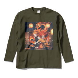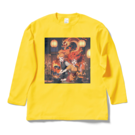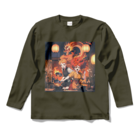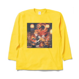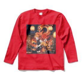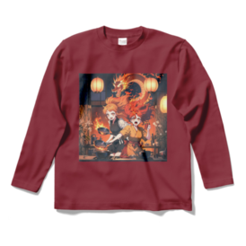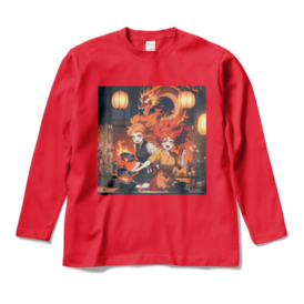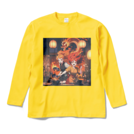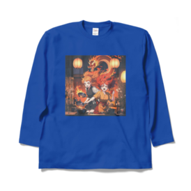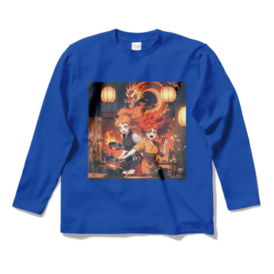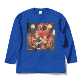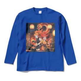 ロングスリーブTシャツ - XL - ロイヤルブルー燃え上がれぇぇ!!🔥🌶️ 和風キッチンで大暴れするスパイキー姉妹が登場! オレンジ髪の姉がフライパンを振り回し、赤髪の妹が唐辛子を握りつぶして、背後に巨大な龍の炎がドバーッと爆発! 熱血MAXのギラギラした瞳とバサバサ舞う髪、提灯と鍋に囲まれたダイナミックな和風アニメスタイルで描きました。 「Burn brighter!!」の叫びが聞こえてきそうな、激辛×和風の熱いイラストです。 Tシャツ・ステッカー・マグカップ・ポスターなど、幅広いグッズで展開中! この商品はpixivFACTORYで作られた商品です。サンプル画像は完成イメージのため、実物と異なる場合があります。