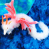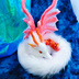 【妖精翼龍】 雲の上に住む龍。大きな翼で、どんな向かい風に阻まれようとも主を守り、決して負けることはない守護神龍。 光を浴びるほどに暗闇で、瞳が眩く光り、見る者に癒しを与えるという☆ 撫でるほどに良くなつき、主に仕える☆ 【蓄光ガラスの瞳】 ★見る程に…吸い込まれそうな赤の瞳で魅了し、暗闇で不思議な光りを放ちます☆ ★職人が1つ1つ作り上げた琉球蓄光ガラス使用しています☆ 色の付いたガラスを溶かし鉄心に丸め、水飴のように溶けた状態のガラスに、銀箔(ぎんぱく)を重ね、特殊な技法で作られた琉球蓄光ガラスを使用しています☆ デザイン生地(朱色) アクリル毛(ホワイト) 軽量粘土 樹脂粘土 アルミワイヤー 高級蓄光琉球ガラス 縦 約75センチ 横 約6センチ 翼 約25センチ 【作品について】 お洗濯は出来ません☆ アルミ針金を全身に使用している為、体を動かすことが出来ます☆(無理に動かすと破損の原因となりますので、お優しいお取り使いをお願い致します☆) ※あくまで観賞用ハンドメイド作品ですので、抜毛、細かな傷、ほつれなどある場合がございます。完璧な物をお求めの方は、購入をお控え下さい☆ ※まんまるんアートドール牧場、Art Doll Forestの作品は、ヤフオク、メルカリ、BOOTH、minneのみ販売しております☆アマゾンなど、その他サイトでの販売は一切しておりませんのでご注意下さい★ お手入れは、優しくクシなどでとき指で優しく撫でてセットしてください☆ ※素人が手縫いで作り上げた作品の為、至らぬ箇所があるかもしれません☆ご承知の上でのご購入をお願い致します☆ #まんまるんアートドール牧場 #ケモノ #蓄光 #アートドール #ハンドメイドぬいぐるみ #Dragon #龍 #ArtDoll #ドラゴン #幻獣 #人形 #JAPAN ※まんまるんアートドール牧場、Art Doll Forestが製作する全ての作品は、作者に知的財産及び著作権があるものとします。