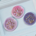 3.5〜4cmほどのシーリングスタンプをシールに仕立てたものが3枚1セットになっています。 同じデザインのスタンプを押したものですが、 マーブルに混ぜてあるため、ワックスの混ざり方はそれぞれ 唯一無二のお品です。 リストより【シーリングワックス】のカテゴリーをお選びいただくと 当店のシーリングスタンプの出品作品をまとめてご覧いただけます! ぜひご利用ください。 裏面には円形の両面シールがセッティングしてあり、剥がしてシールのようにお使いいただけるお品です。 ギフトカードやお手紙に添えたり、ラッピングに使用するのも雰囲気が出てオススメです! 感謝の気持ちを伝える際に、こちらのシールを添えるとぐっとギフトの見栄えが良くなるかと思います。 ★発送は平日に郵便局窓口より行っています。 注文が金〜日曜日の場合、土日を挟んで翌月曜日の発送になります。 ご了承ください。