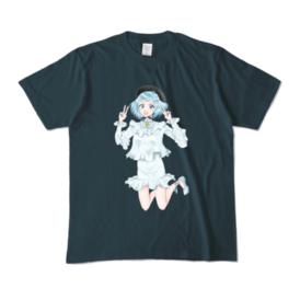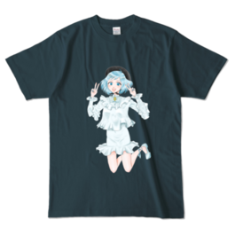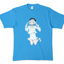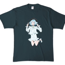 カラーTシャツ - XL - デニム (濃色)ジャンプしている女の子です。 気に入ってくれたらうれしいです。 この商品はpixivFACTORYで作られた商品です。サンプル画像は完成イメージのため、実物と異なる場合があります。