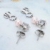 耳元にそっと、愛らしい輝き。猫シルエットとパールのスタッドピアス シルバーカラーのステンレスがクールで上品な印象を与えるスタッドピアスです 愛らしい猫のシルエットにクリアカラーのジルコンと艶やかなロザリン(淡いピンク)のスワロフスキーパールをプラス コンパクトながらも確かな輝きが耳元をさりげなく、そして上品に彩ります 普段使いはもちろんちょっとしたお出かけにもぴったりのアイテムです 「シルバーカラーのステンレスはクールで洗練された印象」 金属アレルギーを起こしにくい素材なのでデリケートな肌の方にもおすすめです 猫のシルエットはシンプルでありながらもその愛らしさを十分に表現 耳元にそっと寄り添うような、さりげない存在感が魅力です クリアカラーのジルコンは小さな星のように輝き上品な華やかさをプラス そして、クリスタルホワイトのスワロフスキーパールは艶やかな光沢を放ち女性らしい優しさを添えます 異なる素材と輝きが絶妙なバランスで調和し洗練された大人の可愛らしさを演出します 「さりげない輝きで、日常を上品に彩る」 コンパクトなスタッドピアスなのでシーンを選ばず毎日身につけられます カジュアルな装いにはさりげないアクセントとして オフィススタイルには上品な華やかさをプラス ちょっとしたお出かけやフォーマルな場面でも主張しすぎず上品な印象を与えます マスクをしていても邪魔になりにくいので、デイリーユースに最適です 「こんな方におすすめ」 猫モチーフのアクセサリーがお好きな方 上品でシンプルなピアスをお探しの方 金属アレルギーが気になる方 普段使いしやすいピアスをお探しの方 ちょっとしたプレゼントをお探しの方 「スワロフスキー・クリスタル」 スワロフスキーは100年以上もの歴史のあるオーストリアのクリスタルガラス製造会社が生み出すクリスタルガラスです。その独自の製造法とカッティング技術により生み出されるクリスタルガラスは透明度と光の屈折率が高くてとても美しい輝きを放つとされています。当方では一般販売されている素材を利用させていただいています 「スワロフスキー・パール」 クリスタルガラスに本物と同じ輝きのパール加工と、その上にマットカラーのようにも見えるエフェクトを施しています。従来の人工パールにはない真円形で傷のない仕上がりが特徴です 「お手入れ方法」 ステンレスは比較的錆びにくい素材ですが水や汗、化粧品などが付着した場合は柔らかい布で優しく拭いてください ジルコン、スワロフスキーパールは衝撃に弱いので丁寧にお取り扱いください 長く美しい状態を保つために使用後は密閉できる袋などに保管することをおすすめします ※モチーフは亜鉛合金にメッキ加工、金具などはスチール製です 金属アレルギーの方はご注意ください ※金具は金属アレルギーになりにくいとされるステンレス製です 「材 質」 モチーフ:ステンレス ジルコン スワロフスキーパール(ロザリン) 金具部:ステンレス 「サイズ」 大きさ:全長 約28mm 猫サイズ:約10mm×6mm 重量 (ピアスの場合一個で)約1.0グラム 【ご注意】 ※ご使用のモニターの色の違いにより、実際の商品と色味が若干異なる場合がございます NN-ER475