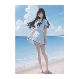 ポスター - B2この商品はpixivFACTORYで作られた商品です。サンプル画像は完成イメージのため、実物と異なる場合があります。 青い海と夏空を背景にした、爽やかなセーラー服のポスター作品です。 透明感のある光と自然な表情が、穏やかな夏の空気感を演出します。 お部屋のアクセントや鑑賞用としておすすめの一枚です。