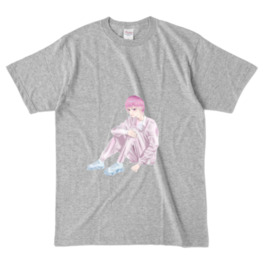 カラーTシャツ - XL - 杢グレー (濃色)体育座りのお兄さんです。 気に入ってくれたらうれしいです。 この商品はpixivFACTORYで作られた商品です。サンプル画像は完成イメージのため、実物と異なる場合があります。