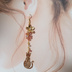 桜 猫 ハンドメイドピアス スワロフスキー ピンク ゴールドカラー