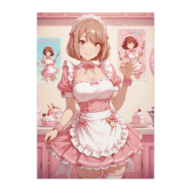 ポスター - B2この商品はpixivFACTORYで作られた商品です。サンプル画像は完成イメージのため、実物と異なる場合があります。 甘くてかわいいピンクのメイド衣装に包まれた、元気いっぱいの一枚。 パステルカラーのスイーツ背景が、ポップで楽しい世界観を広げます。 お部屋を明るく彩る、キュート系ポスター作品です。