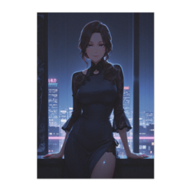 ポスター - B2この商品はpixivFACTORYで作られた商品です。サンプル画像は完成イメージのため、実物と異なる場合があります。 ネオンがきらめく都会の夜景を背景に、 黒のチャイナドレスを纏ったクールな大人の女性。 静かな微笑みと洗練されたシルエットが、 都会的でミステリアスな空気を演出します。
