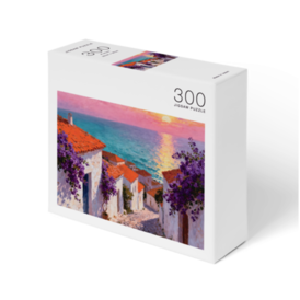 ピンクとオレンジが溶け合う夕焼け空。 穏やかに波打つターコイズブルーの海と、 白い壁に映える鮮やかな紫の花々。 まるで絵画の世界に迷い込んだかのような、 幻想的でロマンチックな風景です。 油絵のような温かみのあるタッチが、 お部屋に優しい彩りを添えてくれます。 ピースを一つずつ繋ぎ合わせながら、夕暮れの海辺を散歩しているような癒しの時間をお楽しみください。 完成後はインテリアとして飾るのもおすすめです。