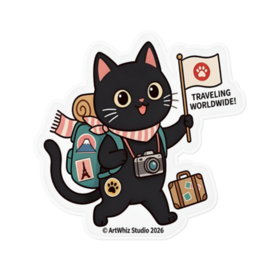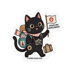 【黒猫シリーズ】世界旅行! 黒猫ステッカー(TRAVELING WORLDWIDE)