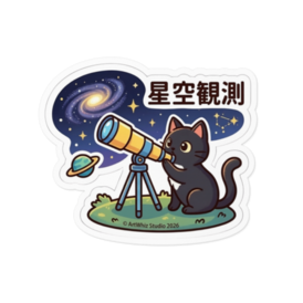 ステッカー - 160 x 160 (mm)【黒猫シリーズ】星空観測! 黒猫ステッカー 望遠鏡で夜空をじっくり観測する黒猫くん♪ 銀河や星座、惑星まで広がる美しい星空が癒し満点! PCやノート、スマホケースに貼って毎晩星空気分 耐水・屋外対応の高品質塩ビ素材で長持ちします。 ●サイズ:100×100mm(標準) / 160×160mm(大判) ●材質:塩ビ(ホワイトタイプ) ●実際の商品には透かし・SAMPLEは一切入りません 黒猫シリーズ第7弾! ・第1弾デートしてよぉ!・第2弾宝くじ当選祈願!・第3弾安全運転! ・第4弾お先にどうぞ!・第5弾吉祥龍!・第6弾世界旅行! も好評発売中♡ この子と一緒に星空を眺めませんか? 価格:680円~ ※1点から即製造・発送! 在庫切れゼロ ── この商品はpixivFACTORYで1点ずつ製造されます。 サンプル画像は完成イメージのため、実物と若干異なる場合があります。 実際の商品はしっかりとした厚手仕上がりになります。 ご質問あればいつでもどうぞ♪