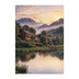 湖畔の山村と夕焼けの風景ポスター