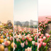 どこまでも続くチューリップの花畑と、ひっそり佇む小さな家々。