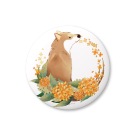 柴犬さんと花便り缶バッチ -金木犀・神無月(10月)-