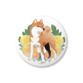 柴犬さんと花便り缶バッチ -菊・霜月(11月)-