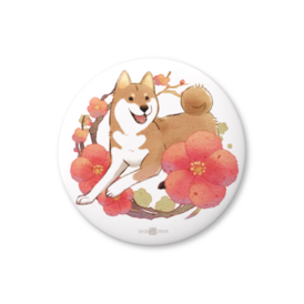 - 柴犬さんと花便り缶バッチ -梅・睦月(1月)-(56mm - ブリキ)2026/03/13
